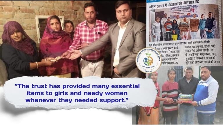 Our trust supports needy women and girls by providing essential help such as books, study material, clothing, and assistance in important needs like marriage and daily necessities, ensuring they receive timely support.
