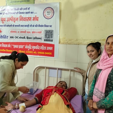 Our Blood Donation Camps are organized to help patients who need blood for emergencies, surgeries, and other medical treatments. Through these camps, many voluntary donors have come forward and helped save precious lives.