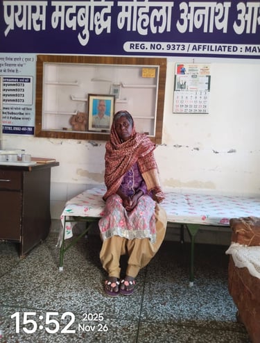 इस लड़की का नाम पूजा गर्ग है यह हिसार की रहने वाली है बचपन में ही इसकी माताजी भी इसको छोड़कर चली गई थी यह लड़की 100% डिसएबल है ये लड़की बोल भी नहीं सकती है इसको मिर्गी के दौरे बचपन से ही आते हैं जिसकी दवाइयां गुप्ता हॉस्पिटल हिसार से चल रही है इस लड़की को लैट्रिंग बाथरुम की कोई सूद नहीं किसी भी तरह कि शुरुआत में जब इसको हमारा प्रयास आश्रम में लाया गया तो यह अपने आप को ही अपने ही दांतों से काट लेती थी और अन्य व्यक्ति को भी काट लेती थी लेकिन समय के साथ इसकी काटने वाली आदत तो ठीक हो रही है लेकिन धीरे-धीरे कुछ तो बदलाव होगा ऐसा हमारा प्रयास आश्रम टीम का यह छोटा सा प्रयास कर रही है