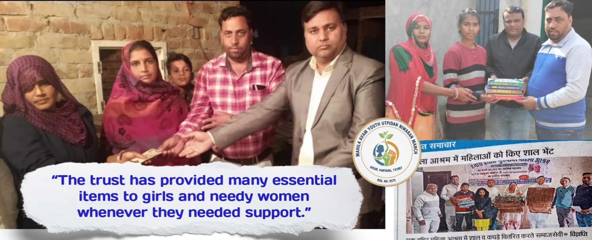 Our trust supports needy women and girls by providing essential help such as books, study material, clothing, and assistance in important needs like marriage and daily necessities, ensuring they receive timely support.