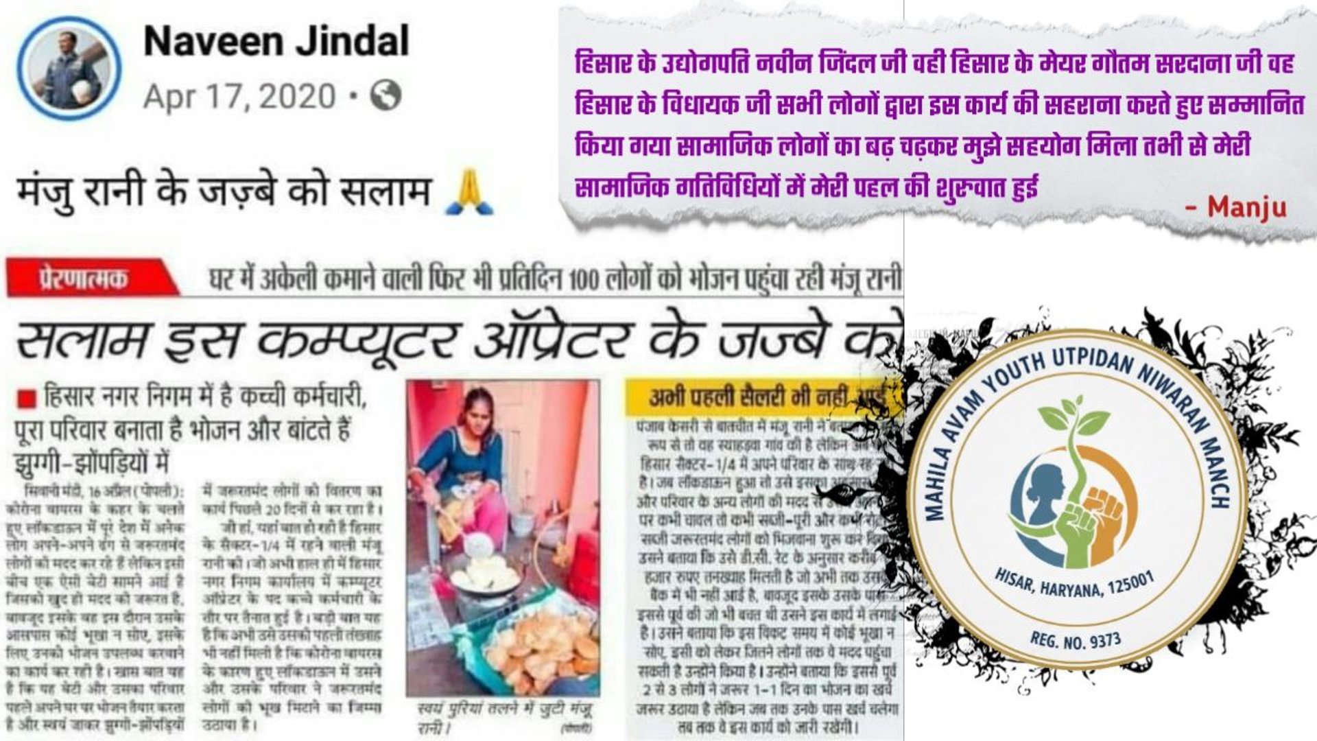 यह आश्रम की पहली महिला रूपा है जोकि मंदबुद्धि है ये दूसरे स्टेट से इसको नारनौद जिला हिसार निवासी शादी करके लाया था जोकि झगड़ा समाज से संबंध रखता है हर रोज के हत्याचार से दुःखी इस महिला ने इसकी पहली बेटी नेहा के जन्म के बाद से ही घर छोड़ दिया था दूसरी बेटी को इसने नारनौद की सड़कों पर जन्म दिया परन्तु उसको कोई अन्य आदमी परवरिश के लिए लेके चला गया जिसका कोई पता नहीं किसी को भी उसके बाद इसका जीवन नारनौद की सड़कों पर 10 साल ऐसे ही बीता रहा है इसका नशेड़ी लोगों द्वारा बहुत शोषण किया जाता था लेकिन कोई भी गांव का या इसकी फैमिली से किसी भी व्यक्ति द्वारा कोई मदद नहीं की गई इसी महिला की बदौलत आज हमारा प्रयास आश्रम की नींव दिनांक 4/11/2023 में हिसार किराये की बिल्डिंग में चलाई जा रही है